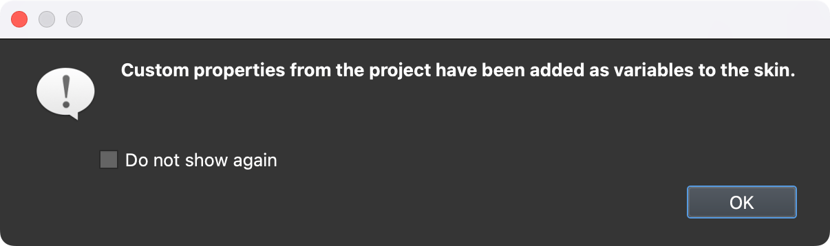 当皮肤从 Web 输出(Web Output) 打开时,此属性将作为变量添加到皮肤中。现在,此属性将具有自己的占位符,并且文本可以基于此属性动态更改。