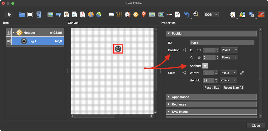 打开皮肤编辑器,使用工具栏中的皮肤编辑器按钮创建新皮肤。或者打开现有皮肤。或者编辑在 Web 输出中添加的皮肤。 -