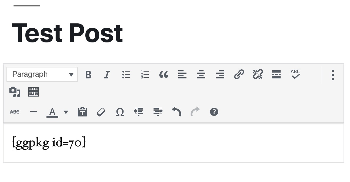 经典编辑器将以短代码形式为您提供包 ID。获得 ID 后,您可以使用短代码小部件。