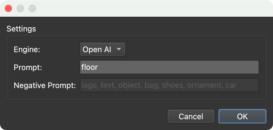 在“设置”对话框中输入提示。默认值为floor。目前仅使用 OpenAI 创建补丁。