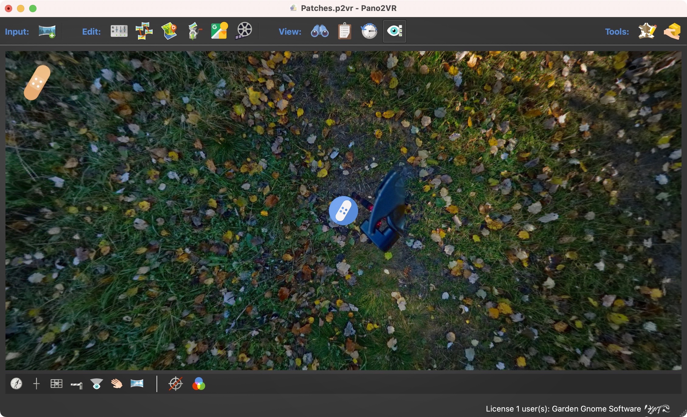将全景图加载到 Pano2VR 或打开现有项目后,从查看器模式打开 Patch 模式或按键盘上的 A。