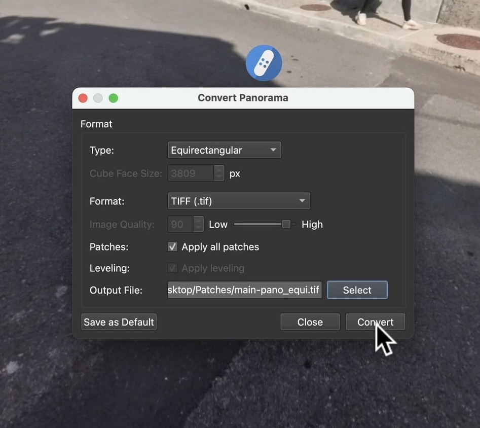 最后,使用 转换输入(Convert Input) 将全景图保存为带有补丁的新全景图。