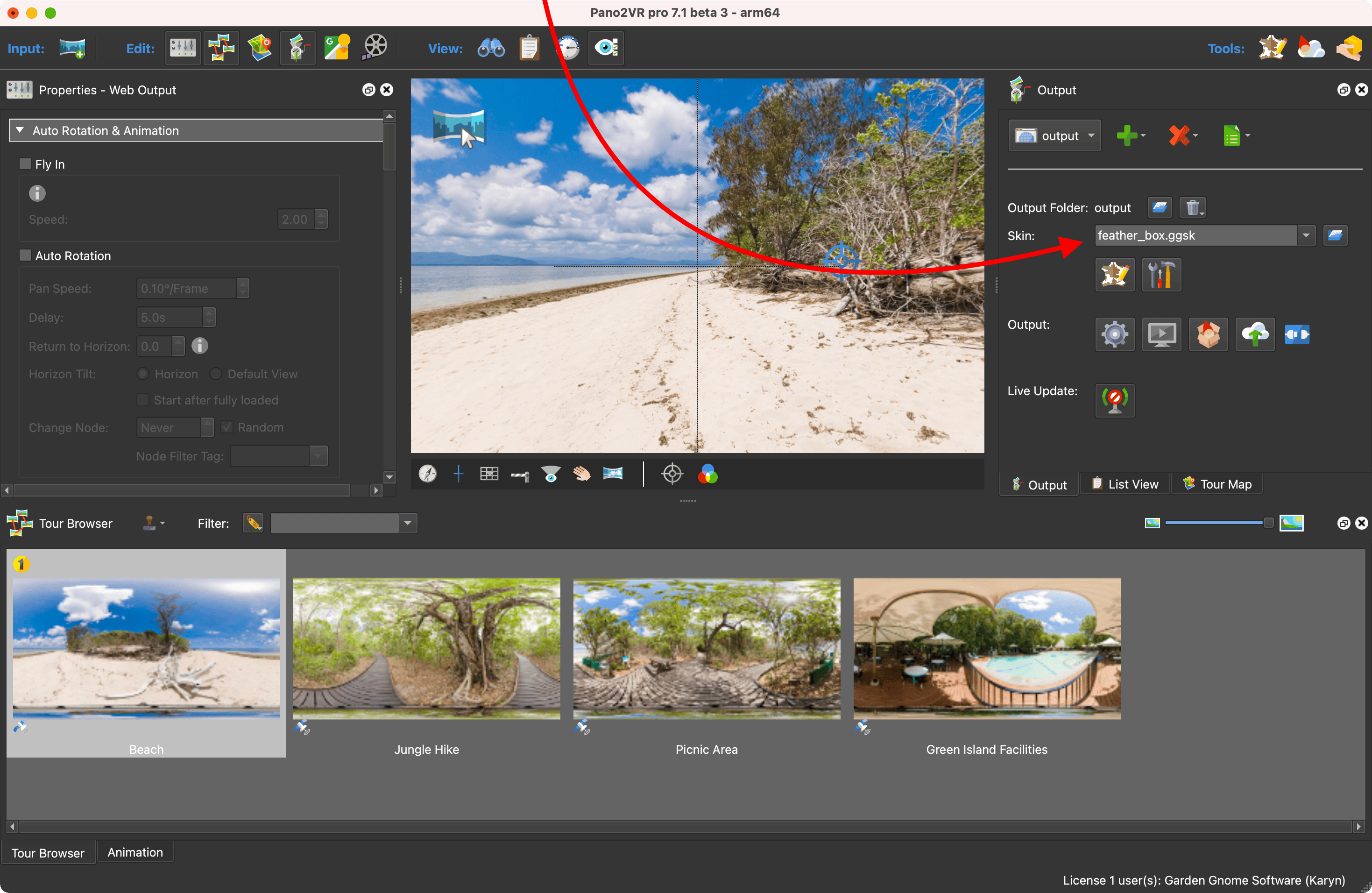 最基本的导览将使用带有 进入 VR(Enter VR) 按钮的皮肤。在 Web 输出设置中添加的皮肤将不会显示在沉浸式视图中。要使皮肤处于沉浸式视图中,必须在 Web 输出的 VR 属性中将第二个皮肤添加到项目中。
