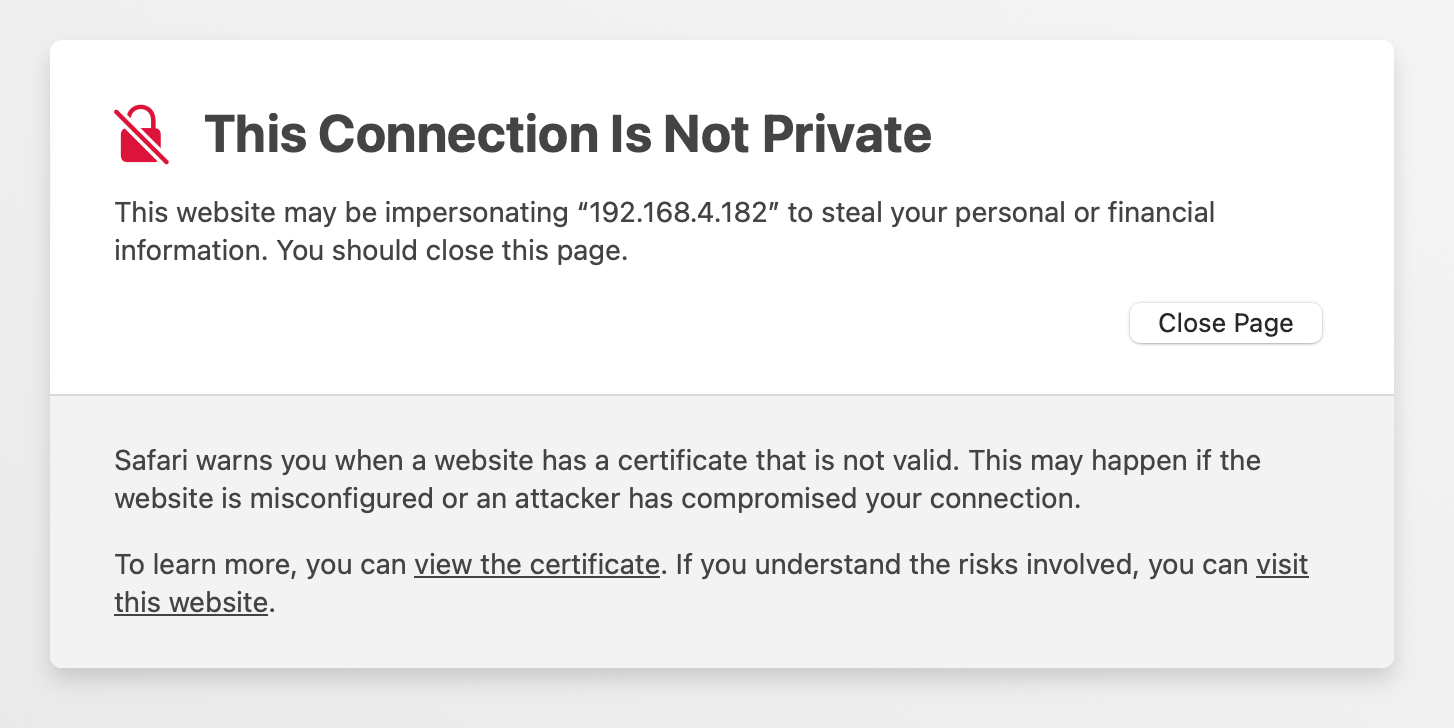 使用集成 Web 服务器 (工具 > 集成 Web 服务器),单击地址 (ssl) 链接。这将打开 Web 服务器页面。但是,您可能会遇到这样的警告: