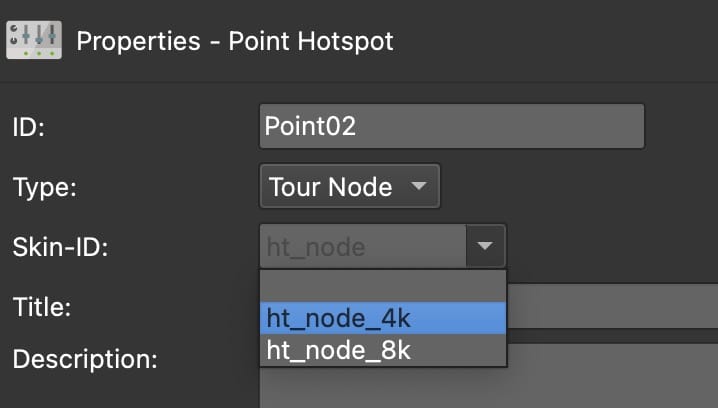 将一对节点(4k 和 8k 版本)拖动到起始全景图,以创建游览节点类型的点热点。