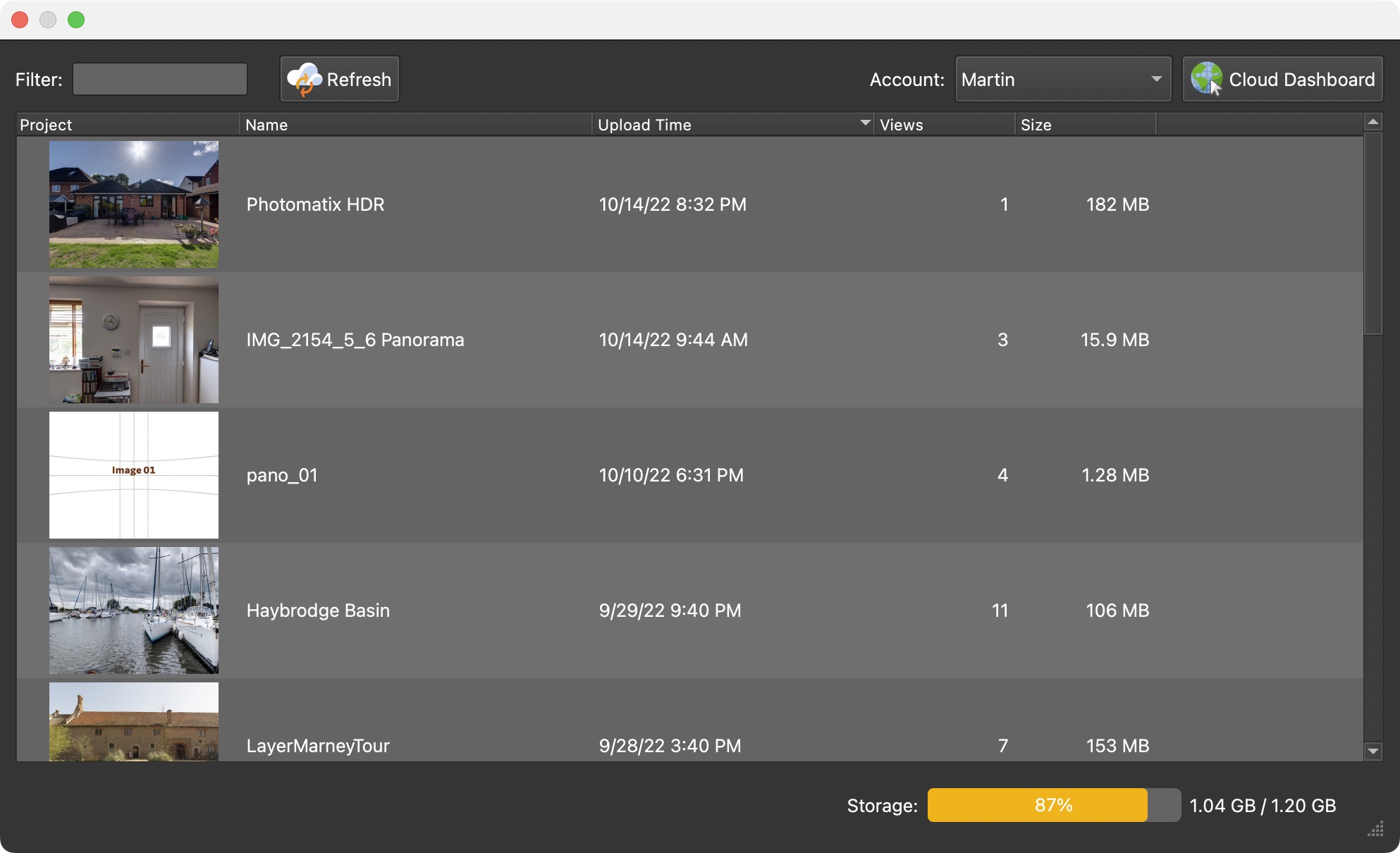 云仪表板 – 打开云仪表板,您可以在其中在线网页中管理您的帐户和投资组合。双击项目的缩略图以在 Web 浏览器中打开它。