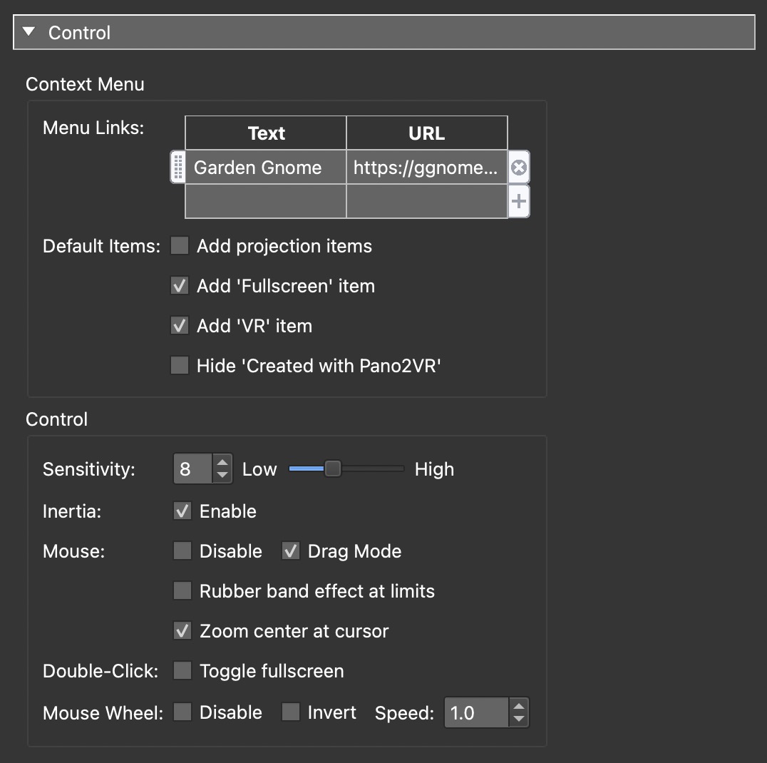灵敏度 – 设置全景图对鼠标移动的灵敏度。低灵敏度会导致它随着鼠标的移动而缓慢移动。