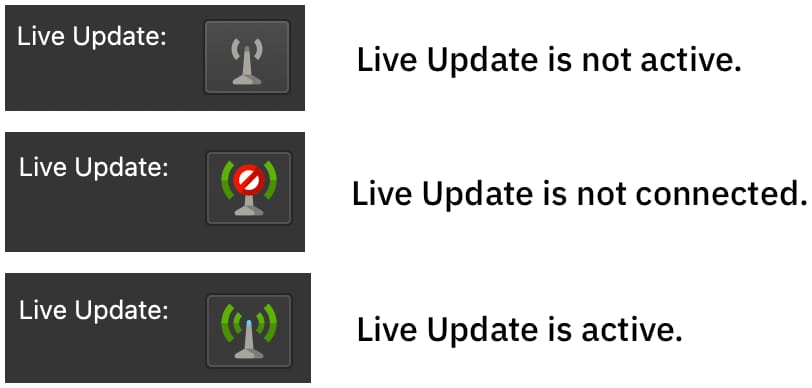 要保持实时更新处于打开状态,但阻止它在创建皮肤时始终更新,请从皮肤编辑器的 视图(View) 菜单中选择 仅保存实时更新(Live Update on Save Only)。