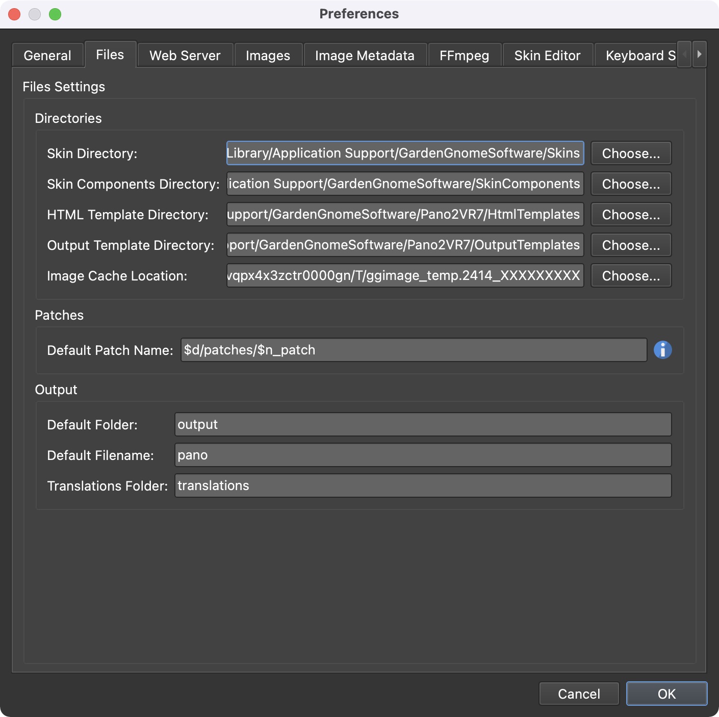 用户可以在菜单栏中找到用户首选项/设置。选择 文件>设置 在 Windows 和 Linux 上;以及 Mac OS 上的 Pano2VR >“偏好设置”。