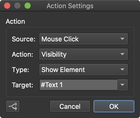 设置目标时,目标元素将在画布中突出显示。将鼠标悬停在“作”属性面板中的目标字段上也会突出显示目标元素。如果要寻址多个元素并且它们具有相同的 ID,则可以在目标的 ID 前面使用 #。