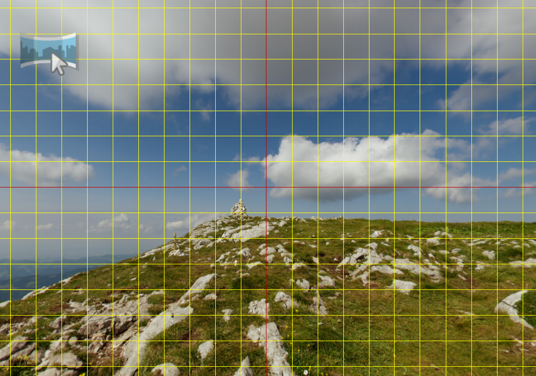 中心标记 – 切换垂直和水平中心线,帮助您拉直全景图并排列向北设置的地标 。