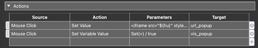 选择点热点模板并添加动作以将网站加载到 iframe 中并将其添加到文本框中: