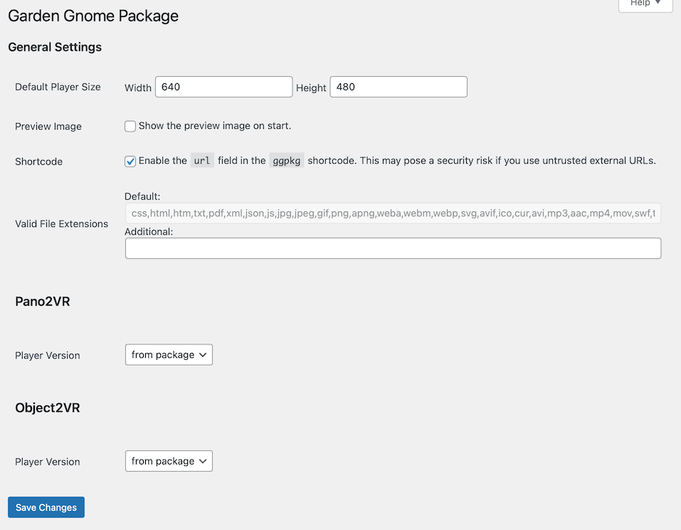 这些设置会影响 GGPKG 的所有实例;来自 Pano2VR 和 Object2VR。可以使用属性或在帖子的侧边栏(如包的宽度)中单独进行更改。