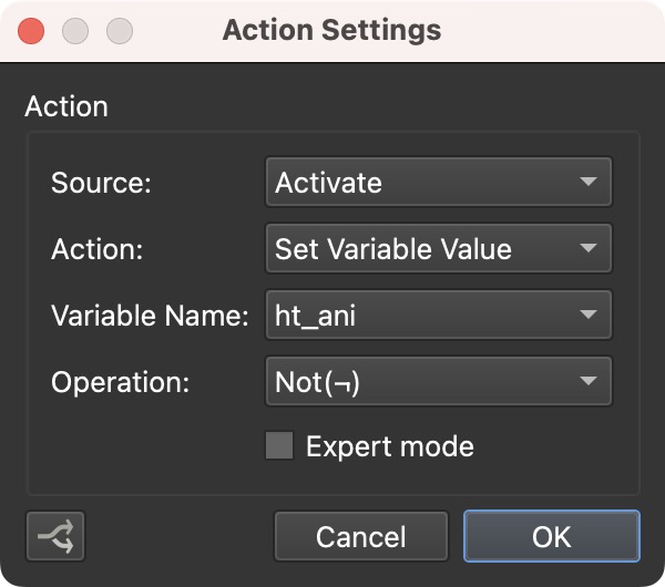添加一个名为ht_ani的变量 。类型 = true/false,初始化值 = false。