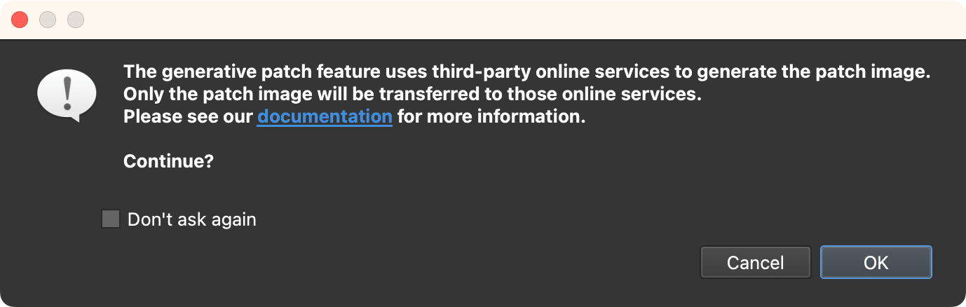 单击生成。此时将显示一个对话框,让您知道正在使用第三方服务。时钟 OK 继续。