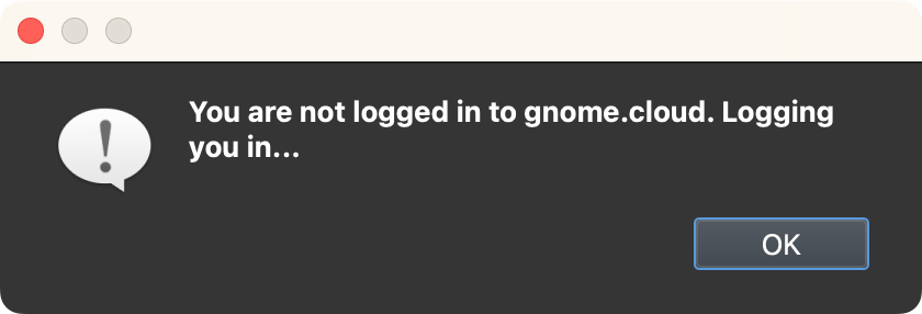 如果您没有登录 ggnome.com,将出现另一个对话框,让您知道 Pano2VR 正在登录您。单击确定继续。