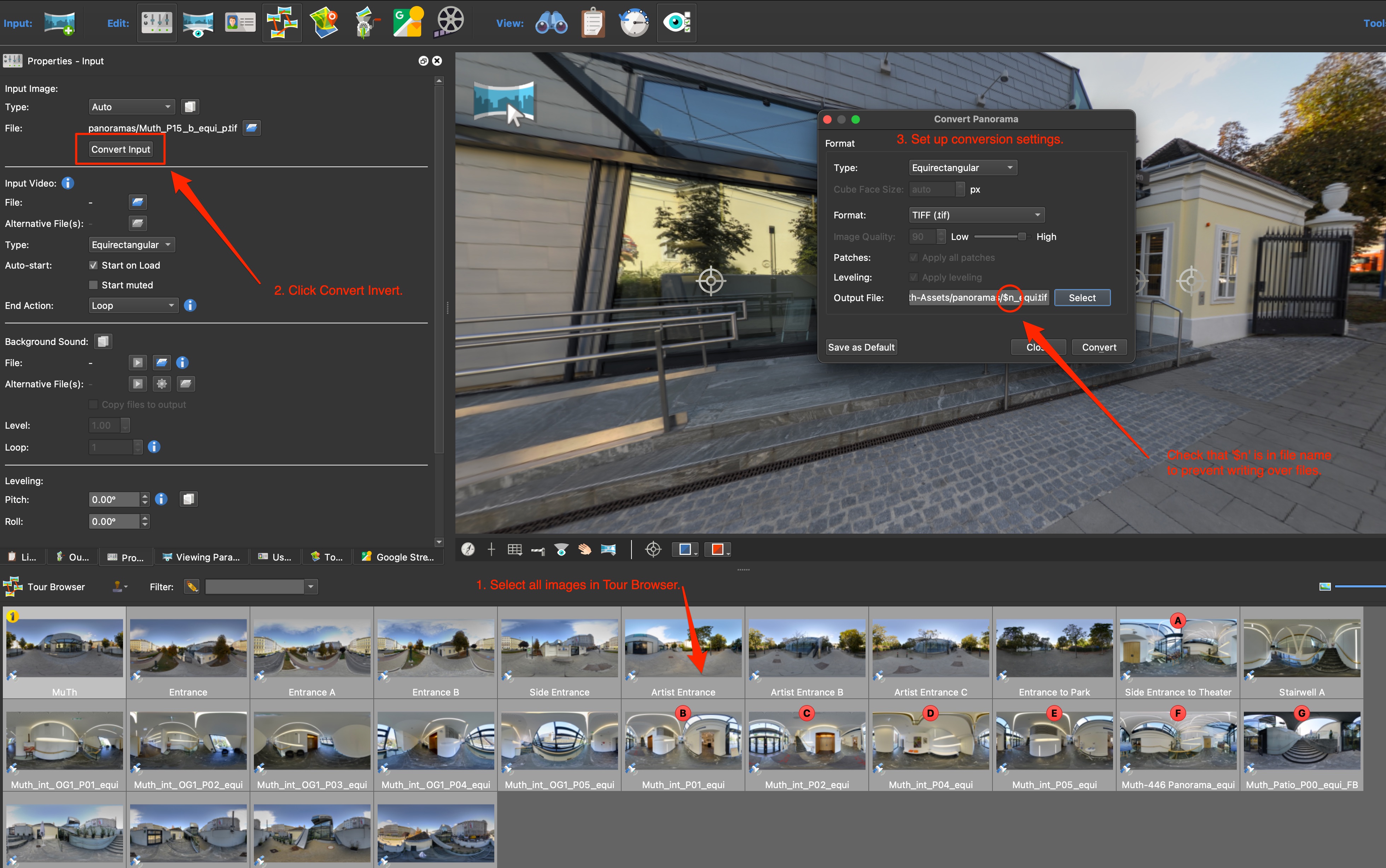 将图像导入 Pano2VR。(您可能需要保存当前项目的副本,因为 Pano2VR 将创建新图像。