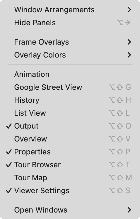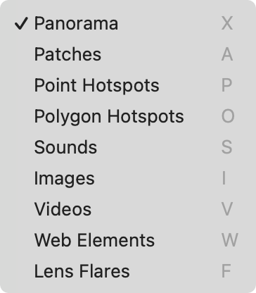 列表视图 – 打开添加到全景图的所有元素的列表视图 。