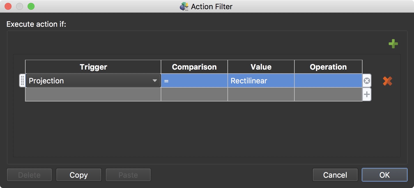 上述状态,仅当当前投影为直线时才执行动作。如果在任何其他投影中查看全景图,则不会执行该动作。
