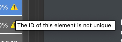 警告符号将在元素旁边的树中可见。将鼠标悬停在其上以查看警告。