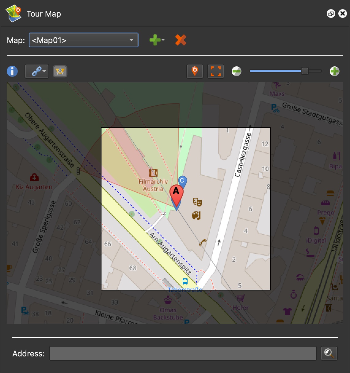 单击红色地图图钉。执行此作时,游览地图将闪烁蓝色。这表示地图已准备好绘制限制。